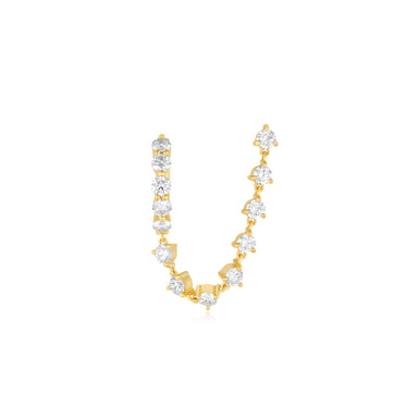 View full detailsThe more sparkle, the better. This earring pairs our classic mini huggie earring with a stud linked by a shimmering chain of prong-set diamonds. De...