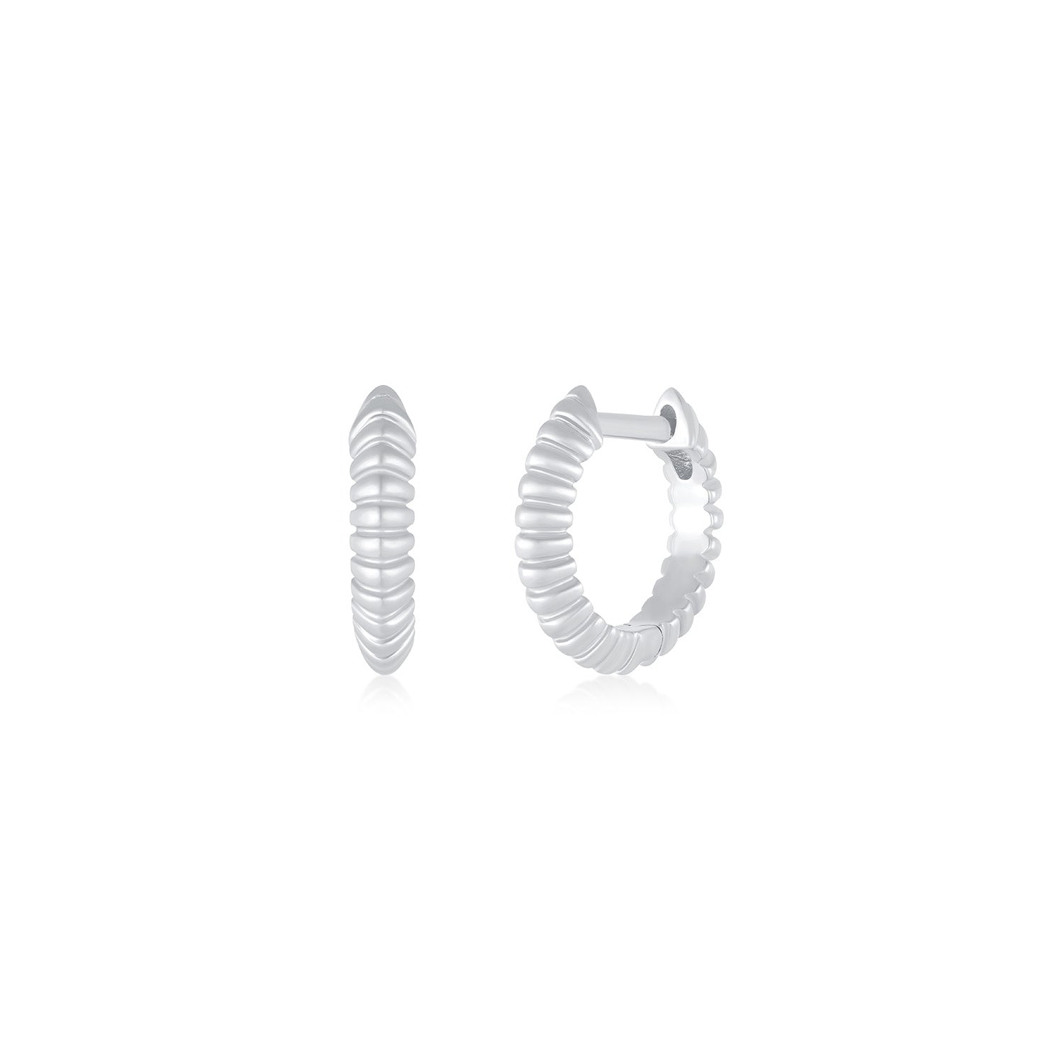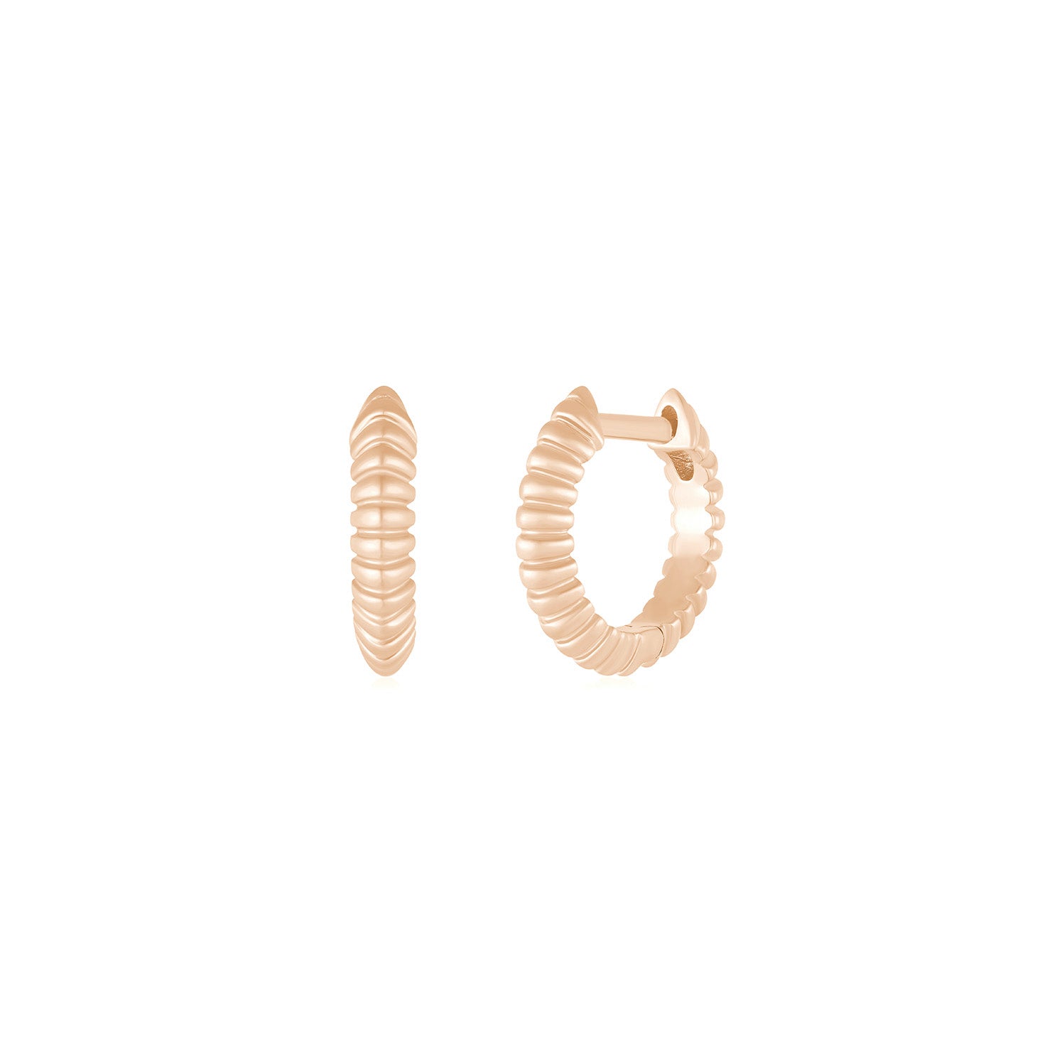Gold Fluted Knife Edge Mini Huggie Earrings