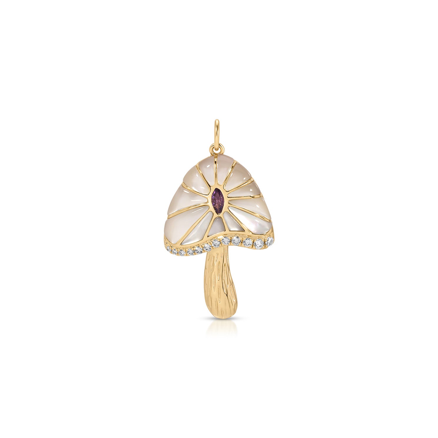 The Jumbo Magic Mushroom Charm adds an enchanting touch to any necklace. Featuring luminous mother-of-pearl inlay, a marquise amethyst at its center, sparkling diamond pavé accents, and a textured high-polish finish, this charm is a true statement piece. Loop onto any of these chains for a magical touch: Add a Chain