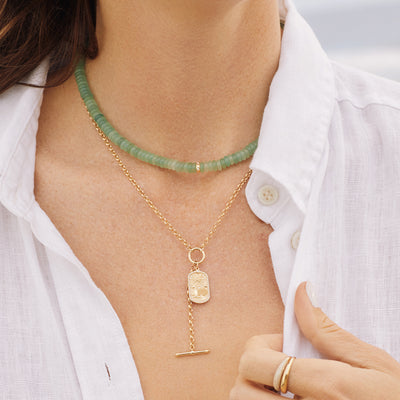 Our jewelry is crafted in 14k solid gold, designed to be cherished and worn daily. While solid gold generally does not tarnish, certain factors such as contact with perfumes, lotions, or natural oils may affect the finish over time. To keep your pieces looking their best, we recommend occasional cleaning – our jewelry cleaner offers an effortless way to keep your pieces looking as beautiful as the day you received them!.