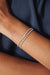 This diamond eternity bracelet features compass-set stones, with prongs positioned at the north and south of each diamond for a distinctive look. The diamonds graduate in size toward the secure box clasp, creating a sleek silhouette designed to highlight the shine of every stone.